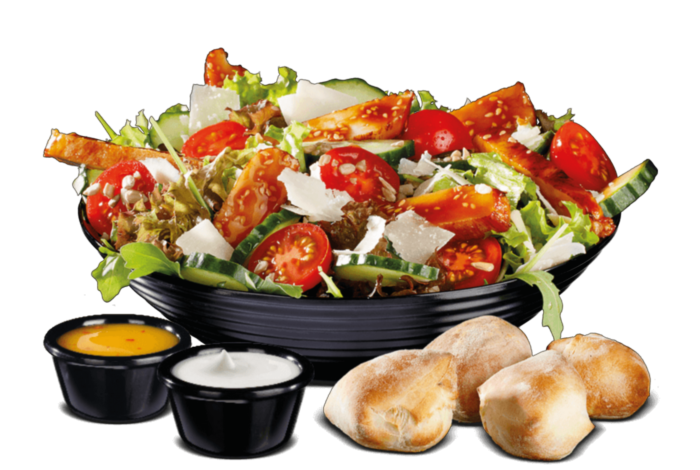(Grana PadanoC,G, Hähnchenbrustfilet Teriyaki-SesamA,A1,F,K, Körnermischung bestehend aus: Pinien-, Sonnenblumen-. und Kürbiskernen, Salatbrötchen A,A1)