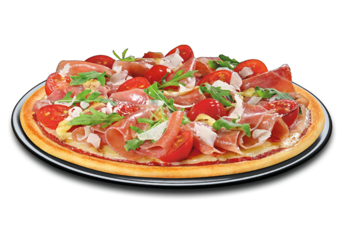 (PizzateigA, A1, Serrano Schinken2, 3, Grana PadanoC, G, Gouda-Käse1, G)