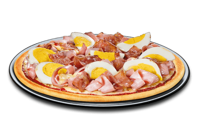 (PizzateigA, A1, Tomatensauce, Hinterkochschinken2, 3, Bacon2, 3, 8, EiC, G, J, Gouda-Käse1, G)